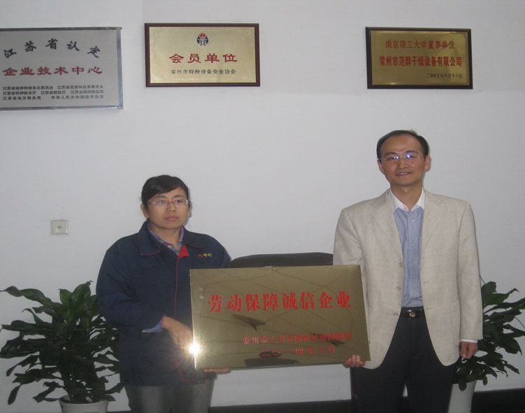 根據省人社廳《江蘇省企業勞動保障誠信等級評價試行辦法》和《常州市勞動保障誠信企業評價管理試行辦法》的規定,由區社會保障行政部門勞動監察機構培育與推薦, 經市社會保障行政部門綜合考評,我公司被評為2014年市級勞動保障誠信企業,日前已經從區勞動保障部門領到銅牌。