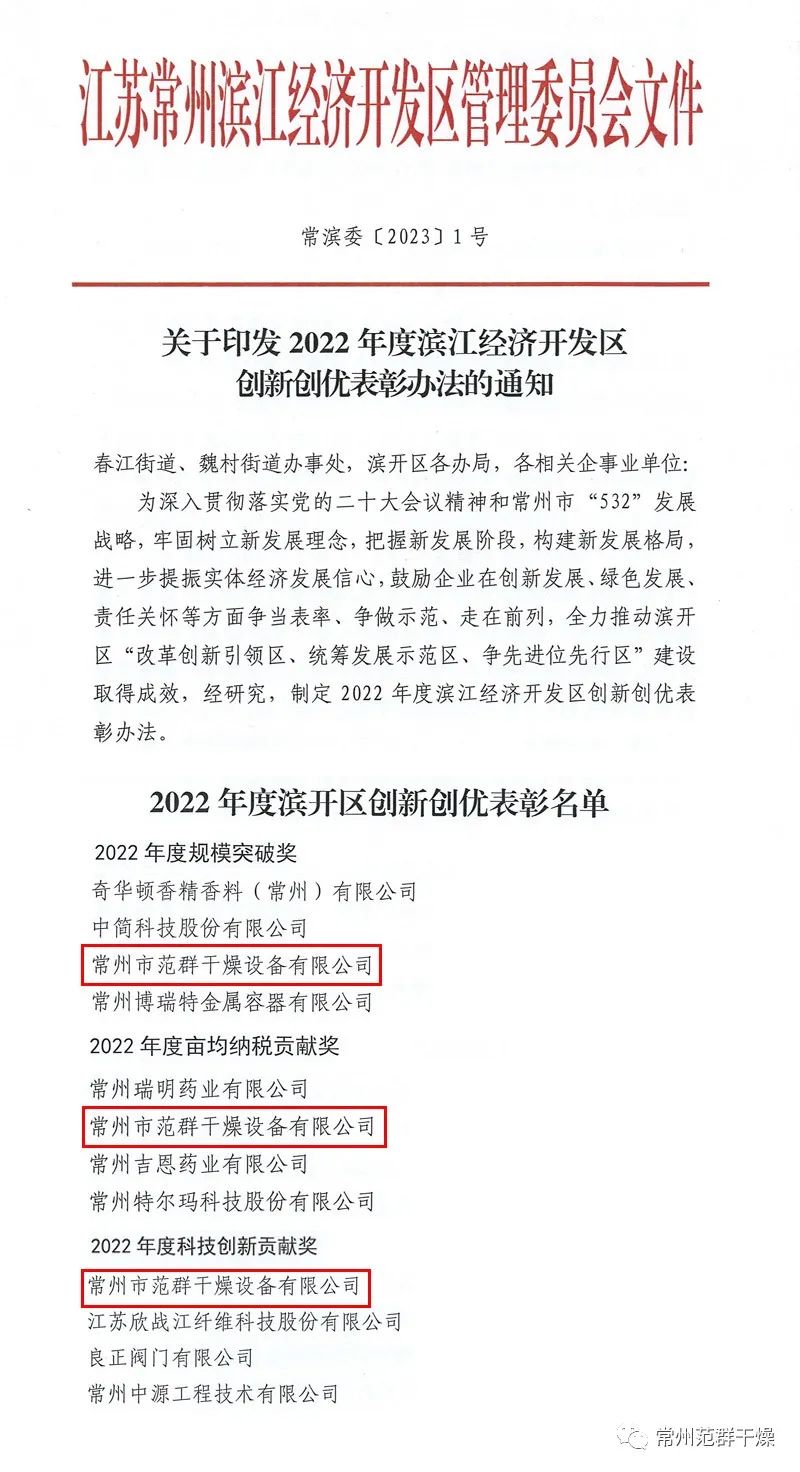 為全面貫徹落實(shí)黨的二十大精神和中央、省委經(jīng)濟(jì)工作會(huì)議及市區(qū)兩會(huì)精神,充分發(fā)揮濱開區(qū)“爭第一、創(chuàng)唯一、勇當(dāng)一流”的標(biāo)桿引領(lǐng)作用,1月11日,“春已至 共WE來” —濱開區(qū)2023年中外企業(yè)迎新聯(lián)誼會(huì)召開。常州范群榮獲2022年度”規(guī)模突破獎(jiǎng)““畝均納稅貢獻(xiàn)獎(jiǎng)”“科技創(chuàng)新貢獻(xiàn)獎(jiǎng)”。